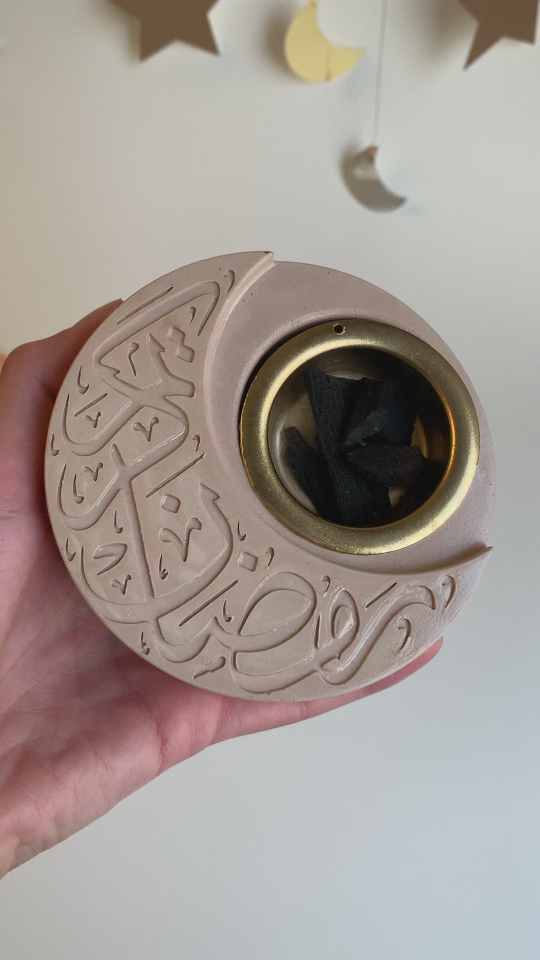 A thoughtfully curated Ramadan Incense burner set in warm beige, designed to create a serene and welcoming Ramadan setting in your home. The Incense burner is curated to be practical, easy to carry around and easy to use. The set includes an incense tongs to ease your experience.